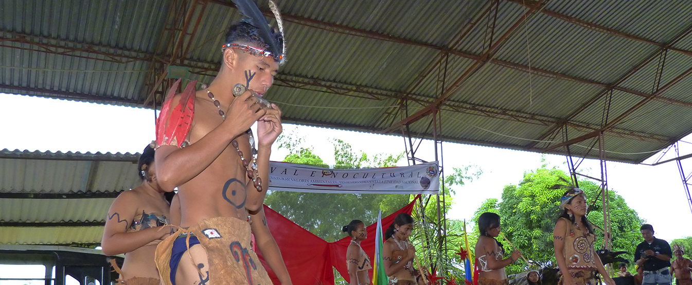 El vestuario tradicional con los que la comunidad realiza sus rituales dancísticos consiste en trajes elaborados en fibra de corteza de árbol. Los trajes son complementos con simbología ancestral, que se plasma en pinturas vegetales naturales, como también se adornan con semillas silvestres y coronas emplumadas para el caso de los hombres. Las mujeres y los hombres acostumbran a pintarse el rostro y el cuerpo con los tintes naturales, utilizando ciertas figuras que tienen un significado mitológico.